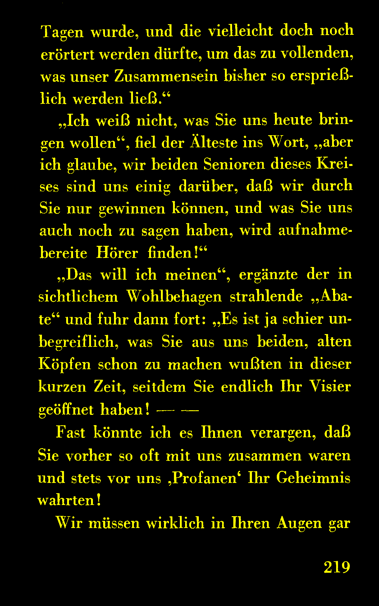 Dinge reden lassen wollte, über die man vor‐